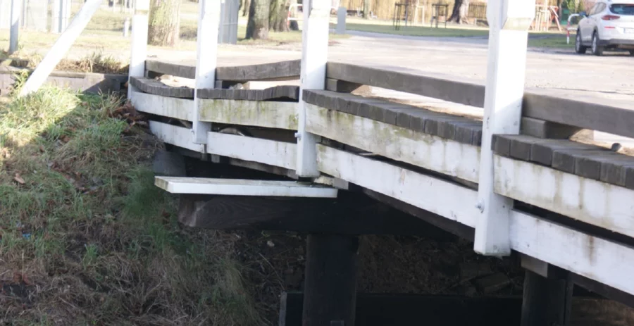 W związku z zauważalnym osiadaniem drewnianego mostu na Łazienkach, Urząd Miejski zlecił przeprowadzenie ekspertyzy technicznej obiektu. Wykazała ona znaczne uszkodzenie przyczółku (skrajnej podpory mostu) od strony Łazienek. Stan tej części mostu określono jako przedawaryjny.
