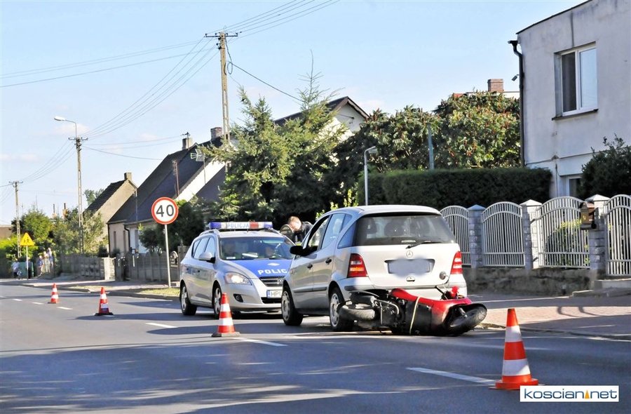 Do zdarzenia doszło po godzinie 15. na ulicy Kościańskiej w Starym Luboszu. Kobieta jadąca na motorowerze holowanym przez auto straciła panowanie nad pojazdem i po koziołkowaniu uderzyła w tył samochodu. Z obrażeniami głowy przewieziona została do szpitala.