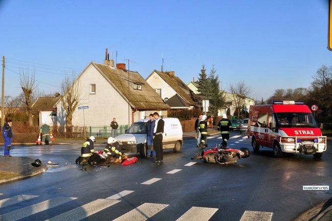 Krótko przed godziną 10. na skrzyżowaniu ul. Chłapowskiego i Stare Borówko w Czempiniu motorowerzysta jadący od strony Borowa zderzył się z samochodem dostawczym. Rannego odwieziono do szpitala w Kościanie. Trwa wyjaśnianie okoliczności zdarzenia.