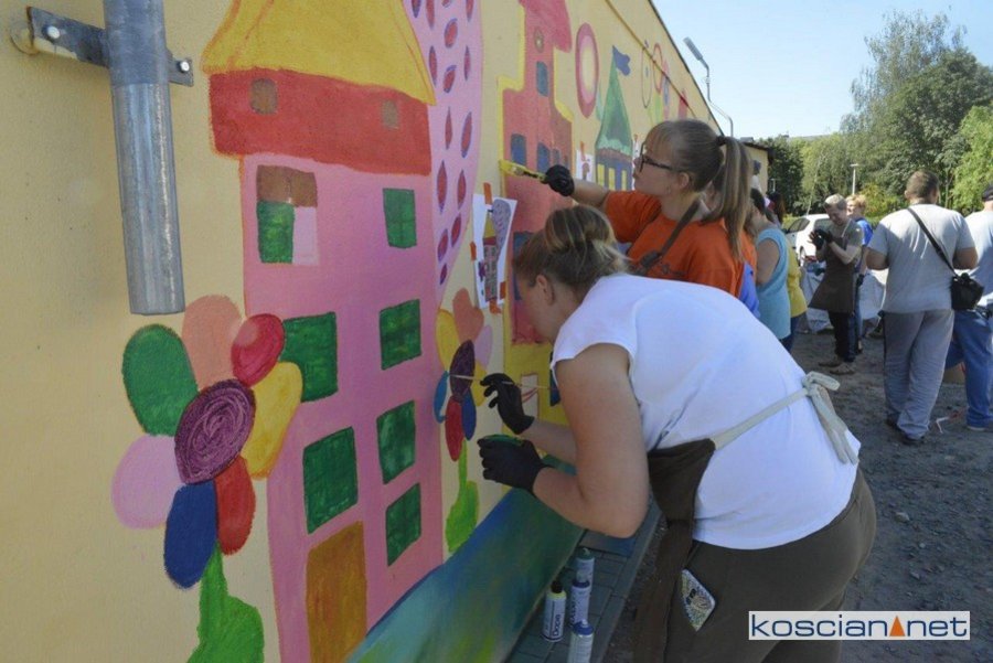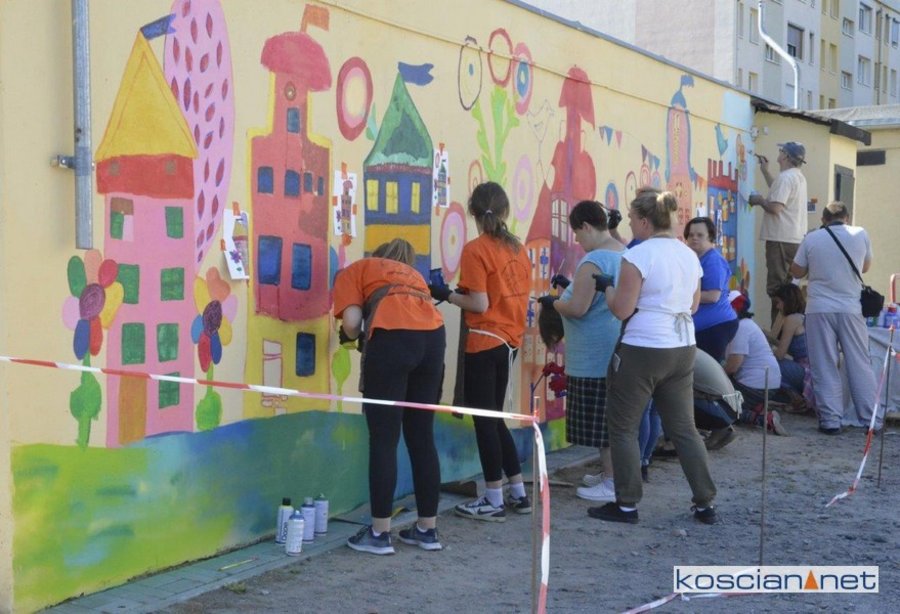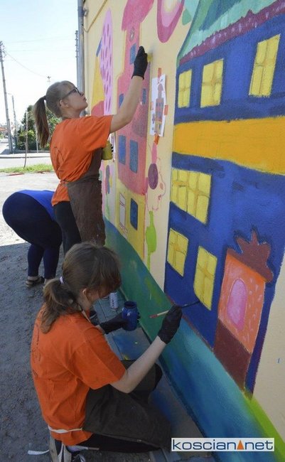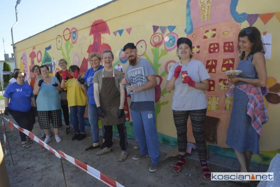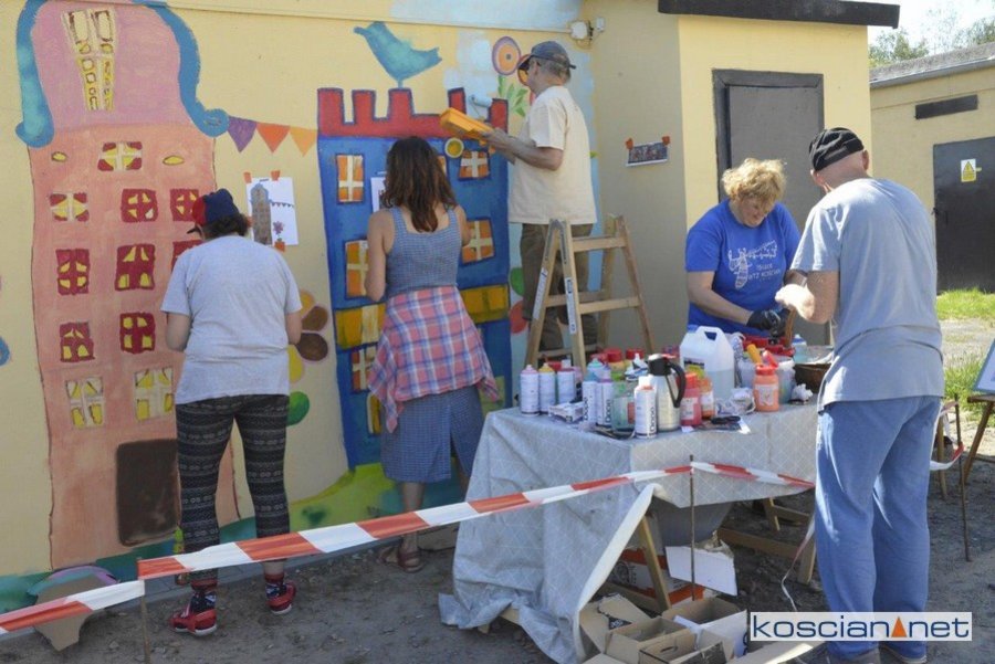 Uczestnicy Warsztatów Terapii Zajęciowej w Kościanie zaprojektowali i namalowali mural na jednym z garaży na Osiedlu Jagiellońskim.