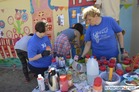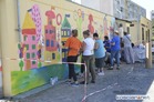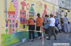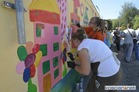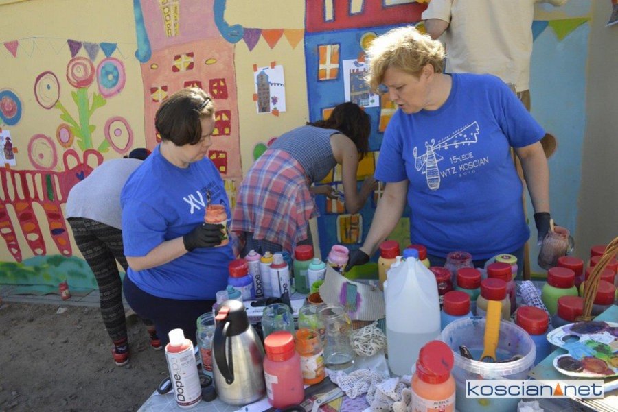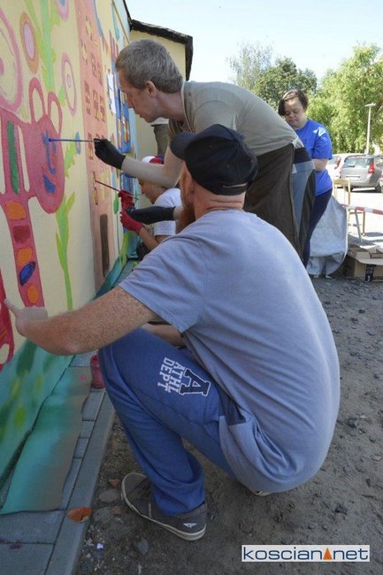 Uczestnicy Warsztatów przenieśli swój projekt na ścianę garażu we wtorek, 14 lipca. UcZculi w ten sposób 25-lecia WTZ Kościan.