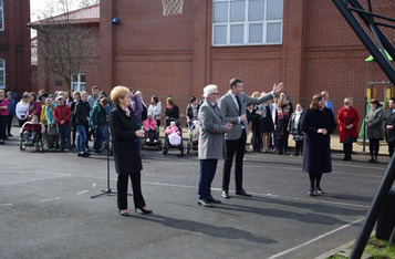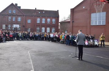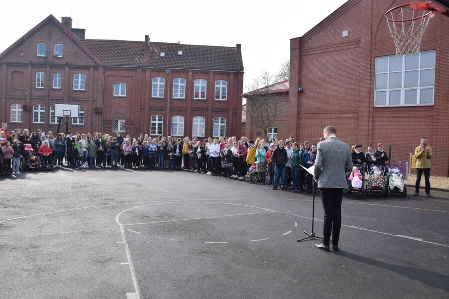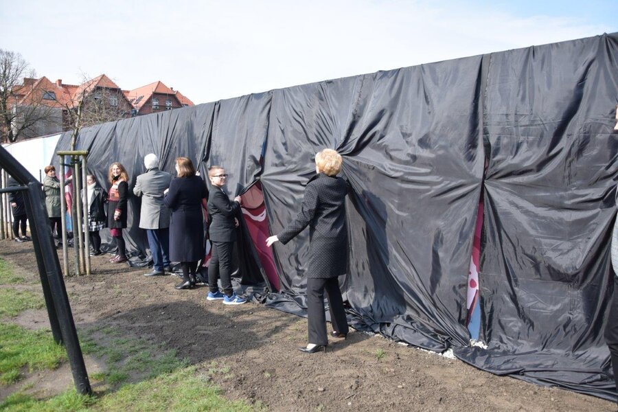 Mural odsłonili w czwartek, 20 kwietnia, Starosta Kościański Henryk Bartoszewski, wicestarosta Dorota Słowińska, Przewodnicząca Rady Powiatu Kościańskiego Iwona Bereszyńska, dyrektor szkoły Dawid Olejniczak, przedstawicielka nauczycieli, przedstawiciele uczniów, przedstawicielka Rady Rodziców oraz pracowników niepedagogicznych.