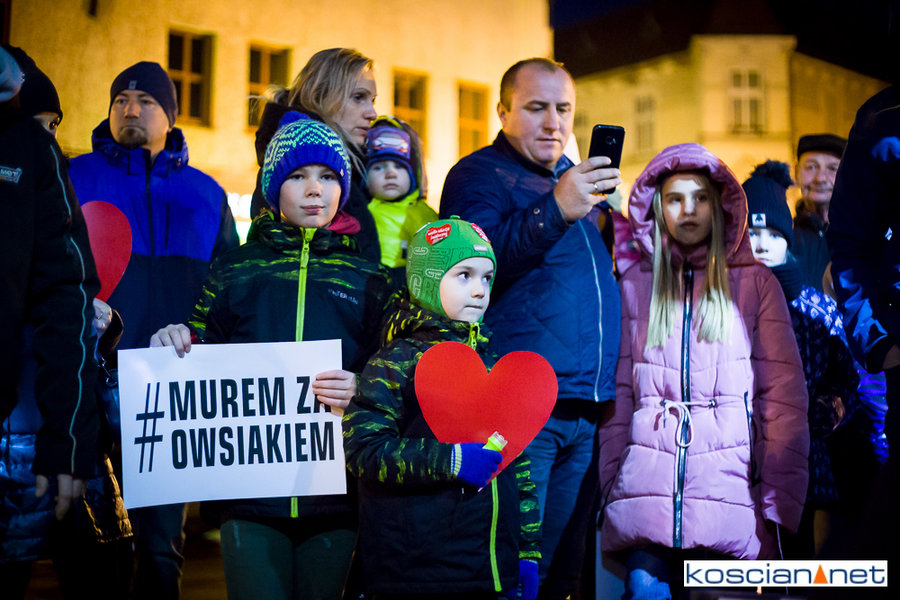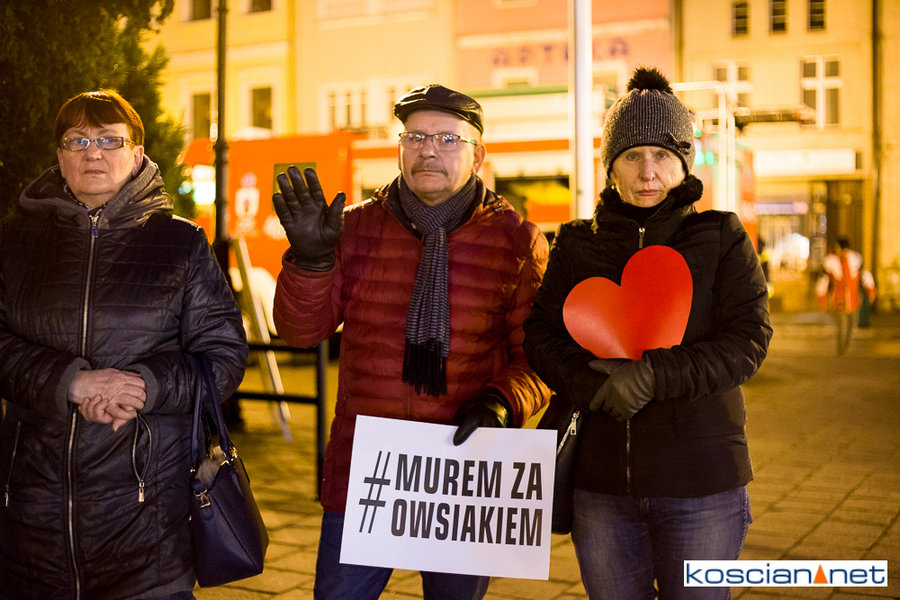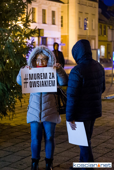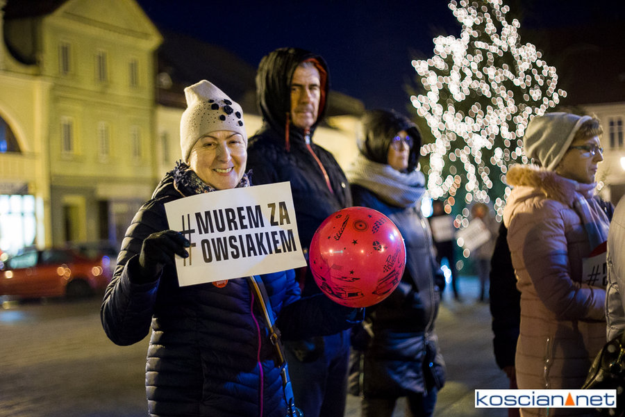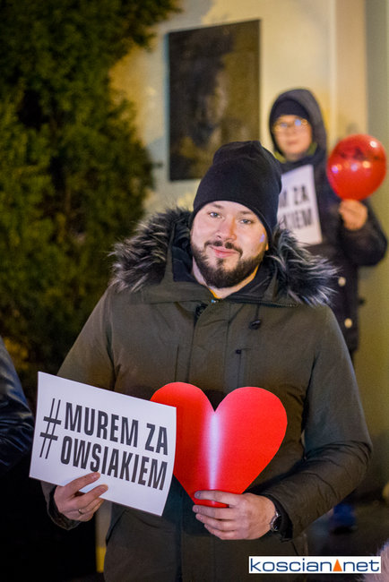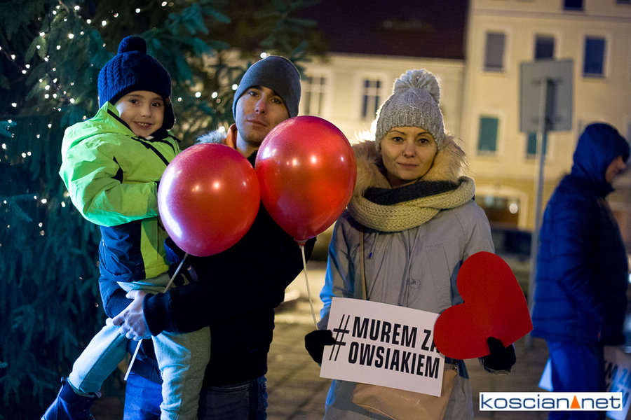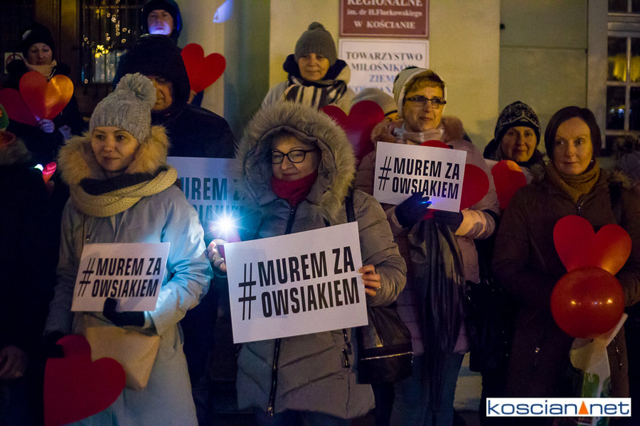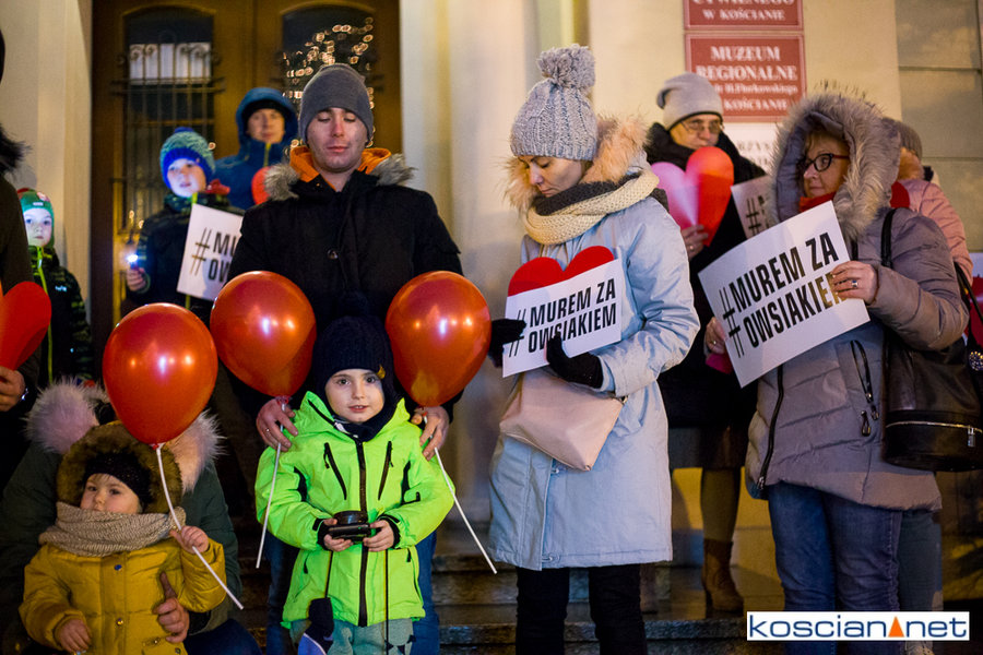 Pomimo małej promocji wydarzenia i niesprzyjającej pogody na kościańskim Rynku spotkało się kilkadziesiąt osób, w tym strażacy OSP Kościan, aby zamanifestować swoje poparcie dla Prezesa Fundacji Wielkiej Orkiestry Świątecznej Pomocy. Spotkanie zorganizował mieszkaniec Kościana Michał Liwerski.