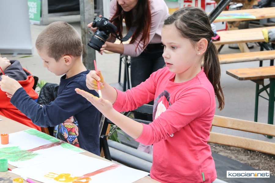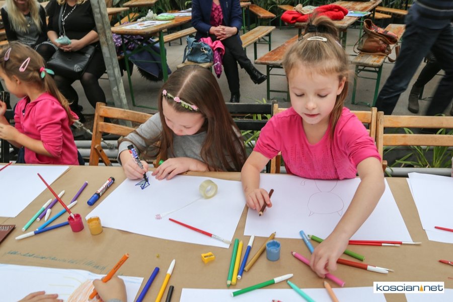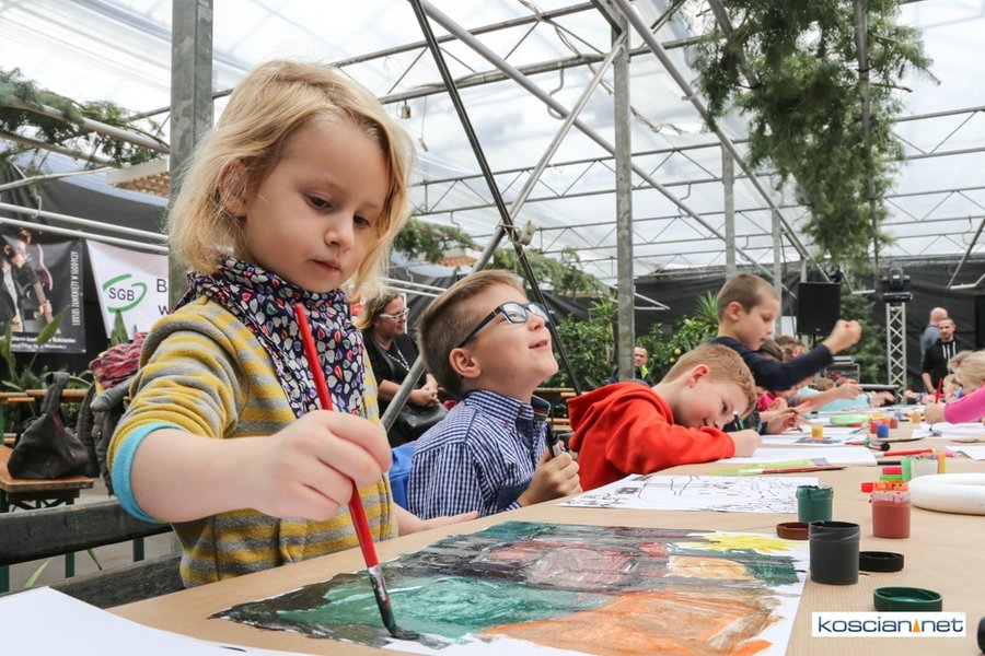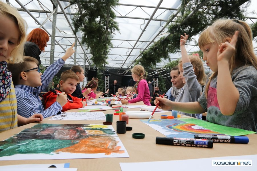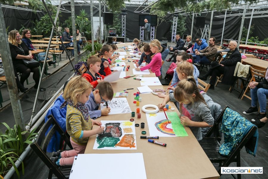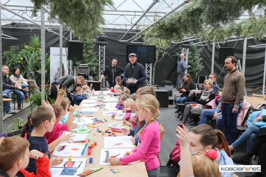 Wczesnym przedpołudniem artystyczna szklarnia przy ulicy Krańcowej w Kościanie gościła dzieci biorące udział w bezpłatnych warsztatach ,,Sztuka kreatywna w świecie dziecka”. Za część muzyczną imprezy odpowiadał Karol Flak, a za działania plastyczne Marek Zielonka. Dzieci malowały i rysowały przy dźwiękach muzyki klasycznej.