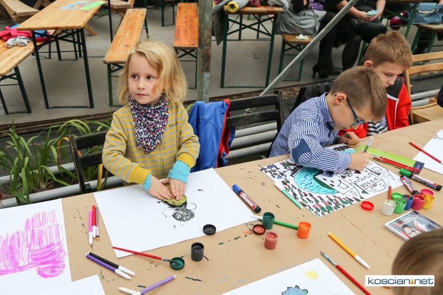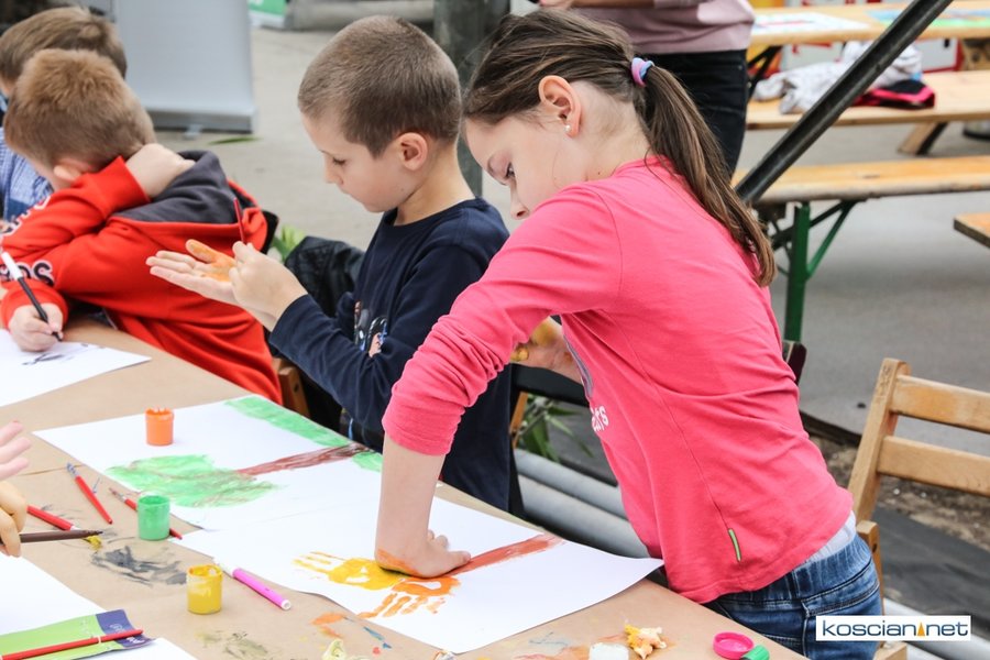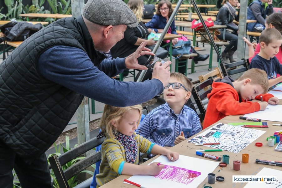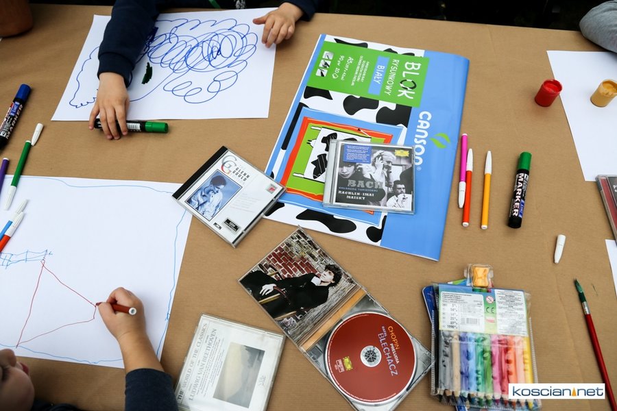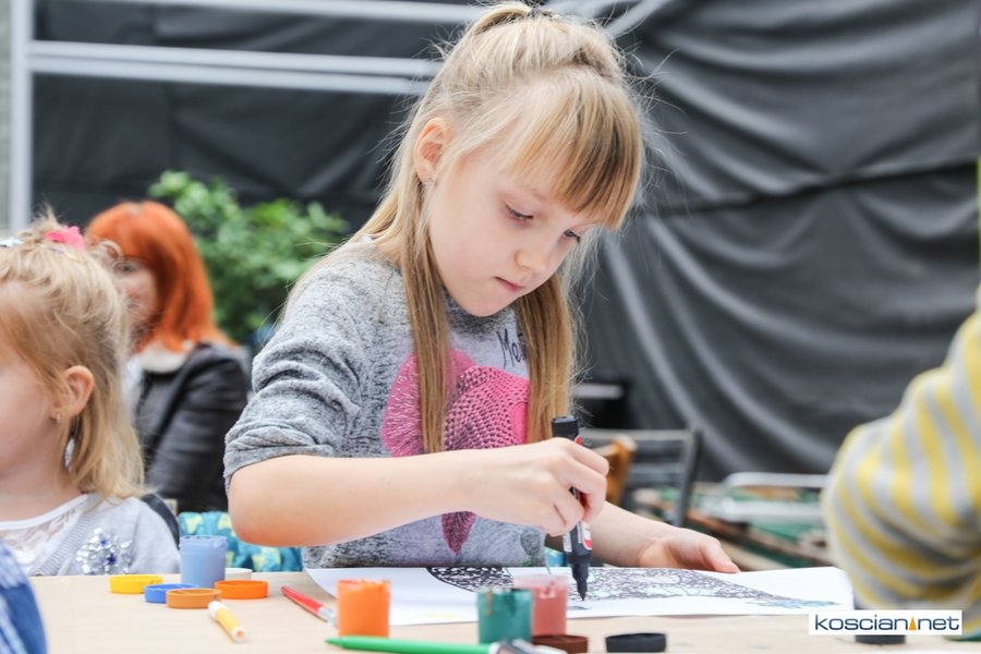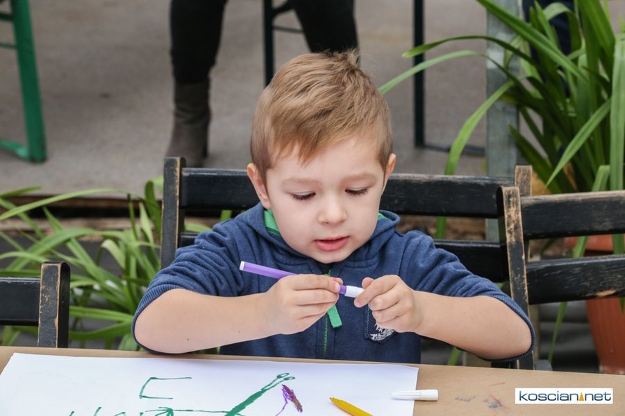 Wczesnym przedpołudniem artystyczna szklarnia przy ulicy Krańcowej w Kościanie gościła dzieci biorące udział w bezpłatnych warsztatach ,,Sztuka kreatywna w świecie dziecka”. Za część muzyczną imprezy odpowiadał Karol Flak, a za działania plastyczne Marek Zielonka. Dzieci malowały i rysowały przy dźwiękach muzyki klasycznej.