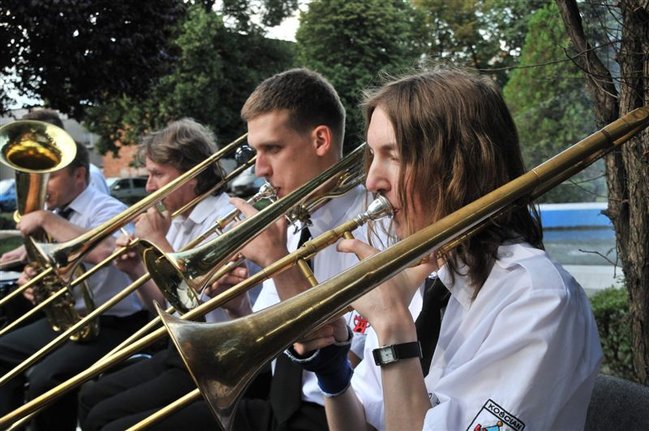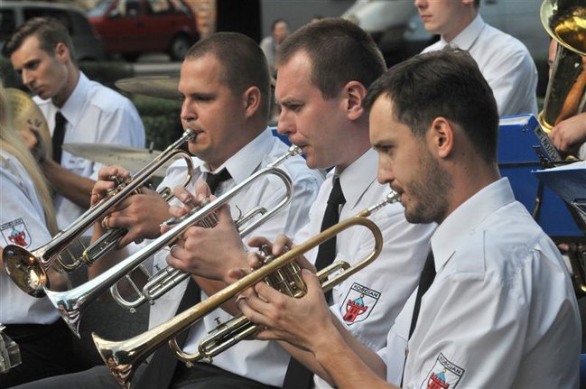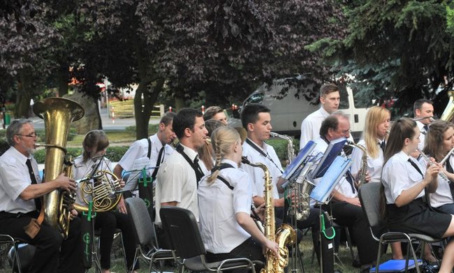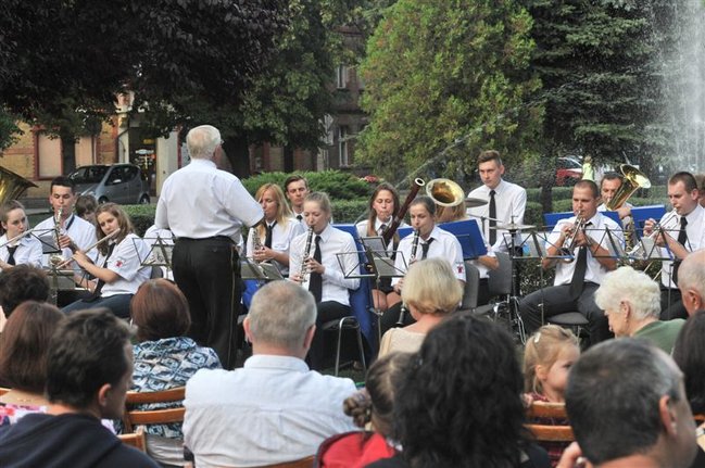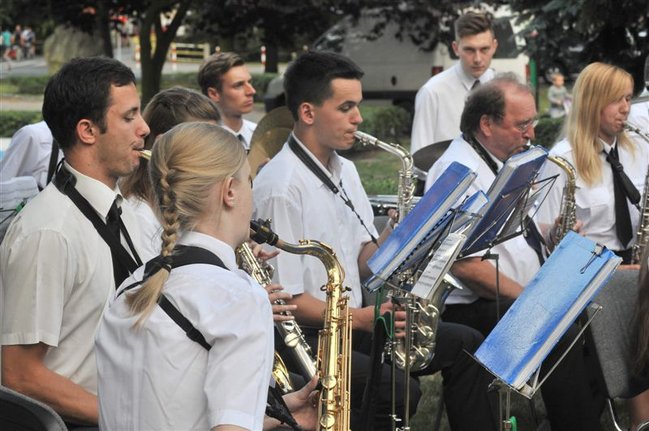 Muzycy zagrali w piątkowe popołudnie na Pl. Wolności przy fontannie. Koncert rozpoczął się z kilkunastominutowym opóźnieniem spowodowanym deszczem. Podzielono go na trzy części. W pierwszej zabrzmiały pieśni maryjne dla uczczenia przypadającego tego dnia Wniebowzięcia NMP, w drugiej - żołnierskie z okazji Święta Wojska Polskiego, a w trzeciej - wakacyjne i rozrywkowe.