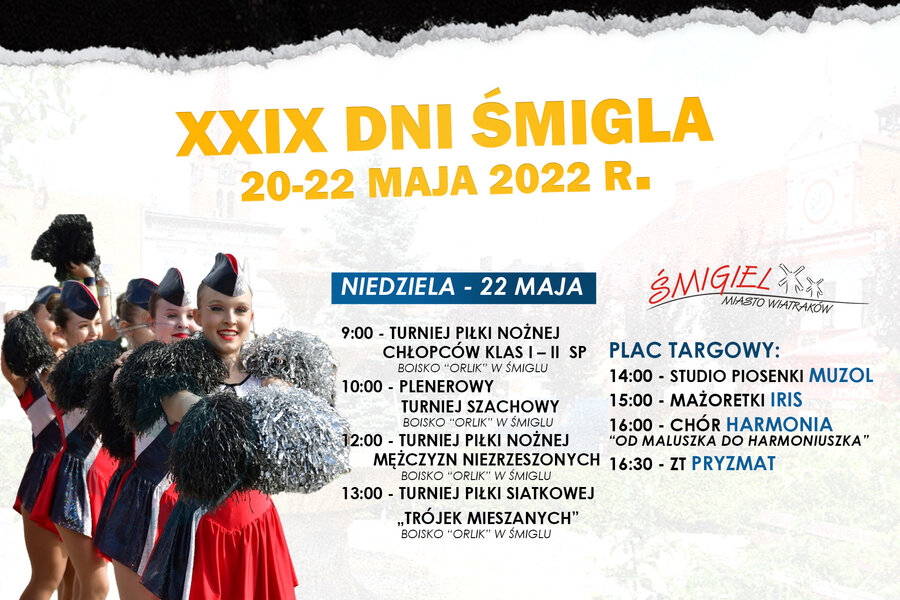 XXIX Dni Śmigla dobiegły końca. W piątek i sobotę na placu targowym wystąpili WonerS, Skolim, Czadoman, Łzy i Cleo. W niedzielę scenę udostępniono lokalnym wykonawcom. Zaprezentowali się młodzi piosenkarze ze Studia Piosenki Muzol, Mażoretki Iris, Chór Harmonia, uczestnicy WTZ i Zespół Taneczny Pryzmat.