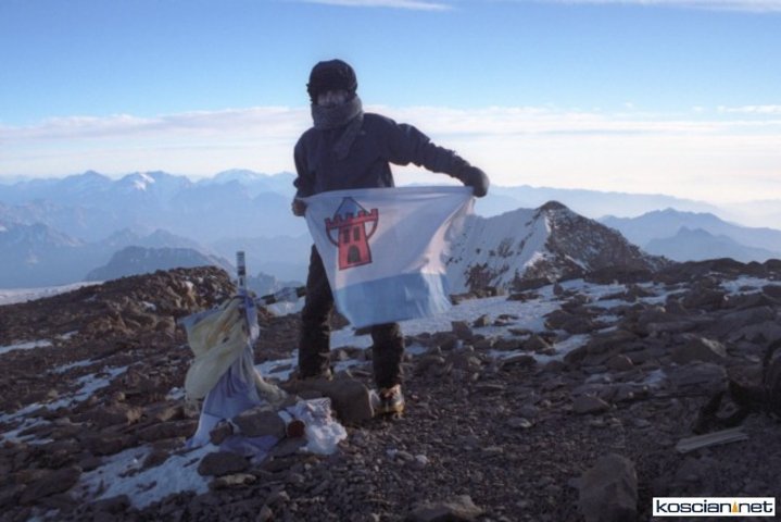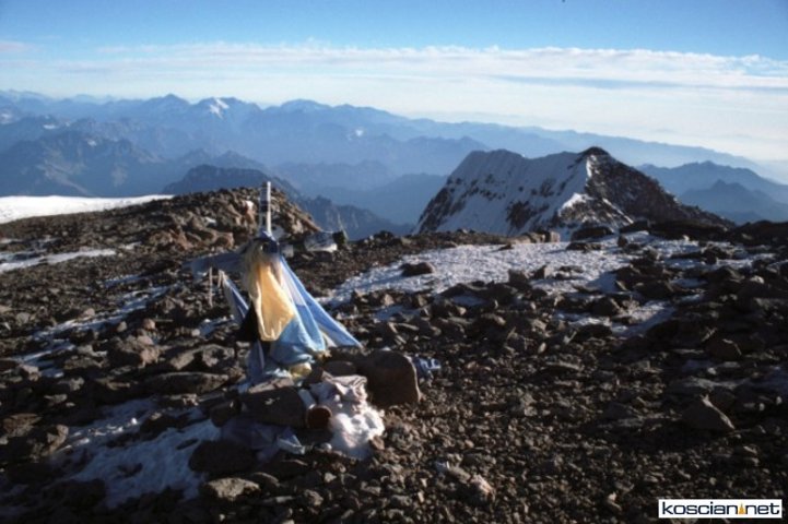 Wieczorem w namiocie ustalamy szczegóły ataku, który podejmiemy następnego dnia. Po posiłku i przygotowaniu rzeczy układamy się do snu. Lenistwo, które nami zawładnęło rankiem sprawia, że wyjście przekładamy na później i ostatecznie z planowanej godziny wymarszu o 5:30 rano robi się 8:45. Na szczęście pogoda jest idealna – błękitne bezchmurne niebo, nie tak porywiste wiatry jak zazwyczaj oraz mróz dochodzący do -15 stopni. Wyraźna ścieżka prowadzi nas zakosami wśród skał a następnie mikstowym polem w stronę najwyżej położonych ruin schronu w Plaza de Independencia (6210 m n.p.m.). Czeka nas teraz najtrudniejszy odcinek drogi, gdyż za lekkim wzniesieniem wita nas kilkusetmetrowy trawers zbocza, które jest wystawione na działanie niezwykle silnych wiatrów. Marsz w takich warunkach kosztuje sporo sił oraz strasznie osłabia. Około godziny 15:30 jestem mocno zaniepokojony tempem marszu. Kilkudniowy pobyt powyżej 5000 metrów osłabiło Pawła, który wkłada wiele wysiłku, aby napierać do przodu. Po „męskiej” rozmowie postanawiamy kontynuować wspinaczkę, choć byłem o krok od jej zaniechania z uwagi na nieubłagalnie topniejący czas. Niezwykła determinacja, siła woli i walka jaką dostrzegam w koledze podczas wejścia żlebem budzi mój podziw. Mimo targających mną myśli o odwrocie ze stoickim spokojem obserwuję poczynania partnera i jego upór w dążeniu do obranego celu. W końcu po blisko jedenastu godzinach wspinaczki, 19 lutego 2010 roku o godz. 19:19 staję na najwyższym wierzchołku obu Ameryk! Dziesięć minut później dołącza do mnie niesamowicie szczęśliwy, choć nieludzko wyczerpany Paweł. Chwila refleksji, kilka zdjęć, garść kamieni ze szczytu zapakowana do plecaka oraz pozostawiony na pamiątkę cukierek i możemy schodzić. Chylące się nieubłagalnie ku zachodowi słońce dopinguje nas do szybkiego zejścia. Gdy osiągamy Plaza de Independencia zastaje nas wieczór. Zmuszeni iść w całkowitych ciemnościach, posiłkując się tylko światłem z czołówek, nierzadko gubimy drogę. Po północy sytuacja robi się bardzo poważna, gdyż zaczyna pogarszać się pogoda, a my z każdą chwilą opadamy z sił szukając szlaku, który wiedzie wśród skał. Po kilku nieudanych próbach wizja noclegu pod gołym niebem na tak dużych wysokościach staje się coraz bardziej realna. Cały czas w głowie dźwięczą mi słowa „Szuwara”, wypowiedziane podczas zejścia do bazy dwa dni wcześniej: