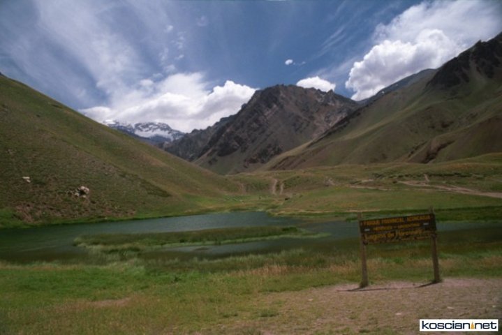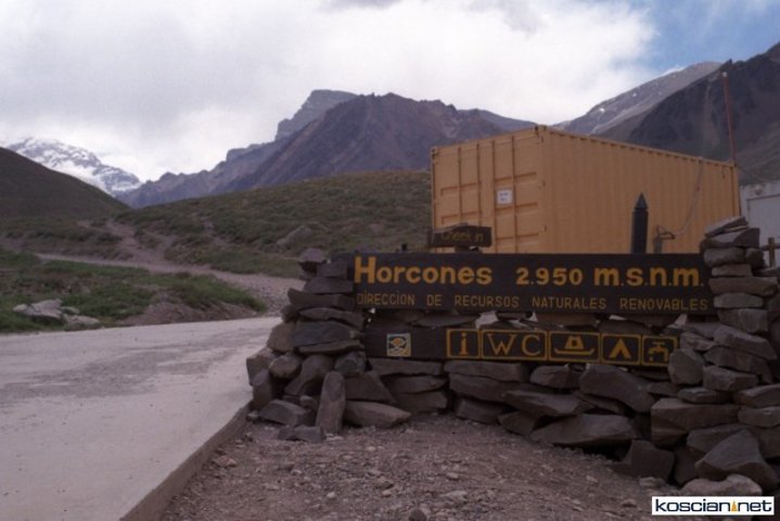5.2.2010 rozpoczynamy na dobre nasze zmagania z Aconcaguą. W wiosce szybko organizujemy muła, na którego grzbiet możemy zapakować 60 kg sprzętu i żywności. Opłata zawiera też transport samochodem do granicy parku i z powrotem po zakończeniu akcji. Skwapliwie korzystamy z tego dobrodziejstwa, gdyż perspektywa marszu paru kilometrów asfaltem w piekącym słońcu nie należy do najlepszych. Osobą sprawującą pieczę nad naszym ładunkiem jest Emanuel, który podwozi nas do budki strażników. Przed wejściem na teren parku poddani jesteśmy kontroli wcześniej wykupionych pozwoleń. Rangersi, gdyż tak nazywa się tutaj strażników, wpisują do specjalnej księgi datę wejścia, planowaną trasę oraz stemplują permit. Otrzymujemy również worki, do których należy pakować śmieci i które należy zdać przy opuszczaniu parku. Po formalnościach możemy już bez żadnych przeszkód rozpocząć naszą wędrówkę doliną Rio Horocones w kierunku głównej bazy Plaza de Mulas (4250 m n.p.m.). Trasa ta zajmuje zwykle dwa dni.