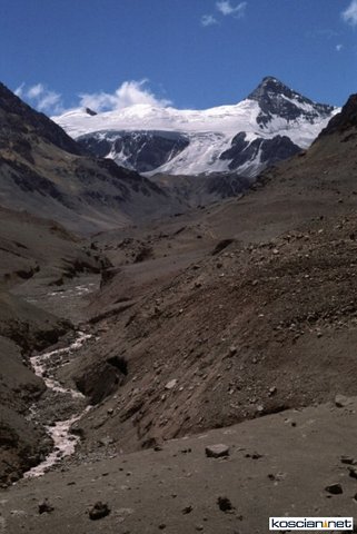 Po spędzeniu nocy w Confluencii kontynuujemy wędrówkę. Marsz rozległą doliną pod wiatr, który niesie ze sobą tumany kurzu i pyłu nie należy do łatwych i bardzo wyczerpuje. Naturalnych osłon przed tym żywiołem jest niezwykle mało, każdą jednak wykorzystujemy na chwilę odpoczynku. Niesprzyjająca pogoda dała się nam tak we znaki, że ostatnie kilkaset metrów do bazy pokonujemy resztkami sił. Rutynowe formalności w budce strażników i otrzymujemy kolejny worek z numerem odpowiadający temu na permicie. Na mojej twarzy maluje się zdumienie, gdy strażnik oznajmia do czego ma on służyć. Otóż powyżej bazy głównej, w której się znajdujemy, należy wszystkie swoje ekskrementy pakować do worka i zdawać w dniu opuszczenia bazy. Kara za niedostarczenie „pakunku” to koszt 300 dolarów.