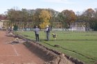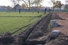 W ubiegłym tygodniu murawa na stadionie została rozkopana. Wokół boiska położono system węży i pomp. Przez całą szerokość boiska przeciągnięto jedenaście sekcji do nawadniania. W każdej zainstalowano po cztery „grzybki” do zraszania trawy. Nie pominięto zakoli za bramkami, gdzie w okresie letnim trawa często usychała. W miejscach przekopów trawa nie została bezpowrotnie zniszczona. Wycięto ją specjalną maszyną, a po położeniu instalacji i ubiciu ziemi, ponownie rozłożono.