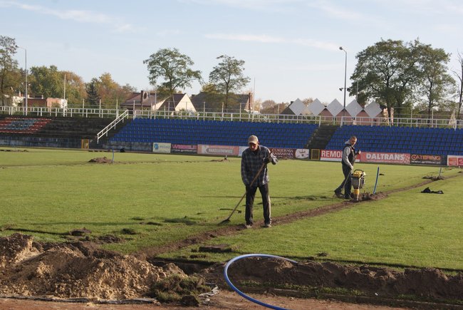- Za pół roku po prowadzonych pracach nie będzie śladu – zapewnia dyrektor Korbik. - Najważniejsze jest to, że murawa będzie nawadniana w nocy w zależności od temperatury i poziomu wilgotności. Opracowania ogrodnicze mówią, że właśnie wtedy trawa najlepiej przyjmuje wodę. System nawadniania był na tę chwilę najbardziej potrzebny na stadionie. Tym bardziej, że w tym roku zrobiliśmy całkowite piaskowanie, wgłębny dosiew trawy z areacją i wertykulacją.