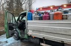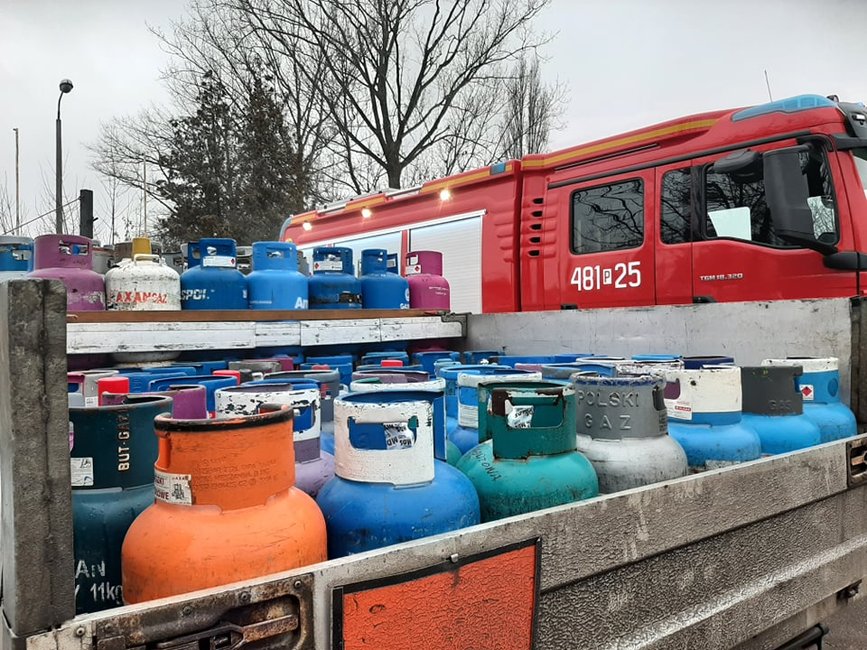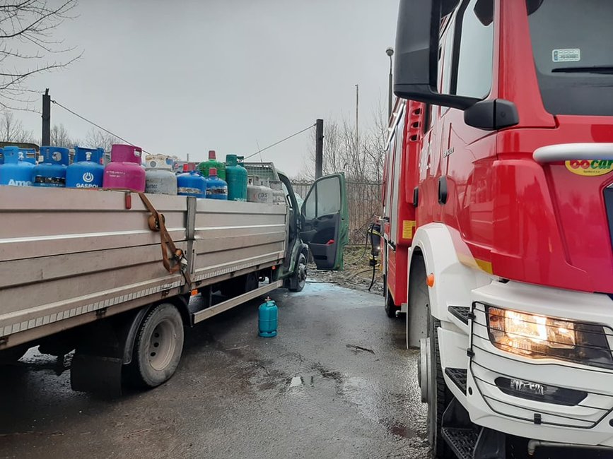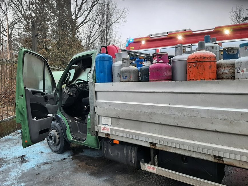 Zapalił się samochód przewożący kilkadziesiąt butli z gazem.
