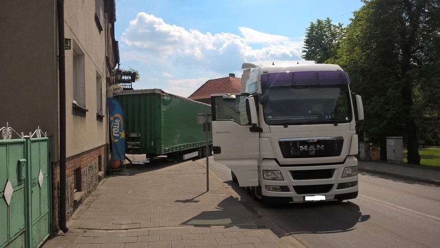 Na ul. Kościańskiej od ciężarówki odczepiła się naczepa. Zjechała na chodnik i uderzyła w jedną z kamienic. Za kierownicą tira siedział 28-letni mieszkaniec powiatu wschowskiego.