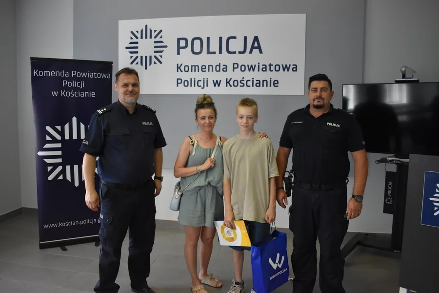 Nagrodę za III miejsce Piotr odebrał w minionym tygodniu z rąk Komendanta Powiatowego Policji w Kościanie mł. insp. Roberta Przyjemskiego i aczelnika Wydziału Prewencji podinsp. Konrada Stróżyńskiego.