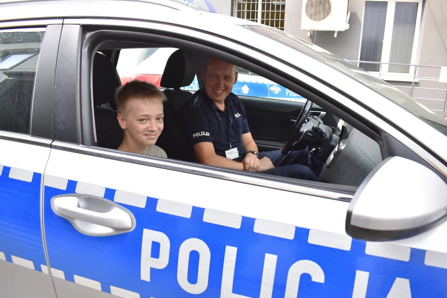 Dodatkową atrakcją przygotowaną specjalnie dla Piotrka była możliwość spotkania się z policjantami różnych pionów, porozmawiania z nimi oraz zobaczenie jak wygląda służba w Policji. Nietypową wycieczkę poprowadziła mł. asp. Paulina Piechowiak policjantka Zespołu do spraw Nieletnich i Patologii. Chłopak miał możliwość wsiąść do radiowozu oraz na motocykl policyjny, a także poznać sprzęt wykorzystywany podczas codziennej służby. Z zainteresowaniem oglądał między innymi stanowisko kierowania, pomieszczenia dla osób zatrzymanych oraz salę ćwiczeń relacjonuje Jarosław Lemański, oficer prasowy KPP w Kościanie.