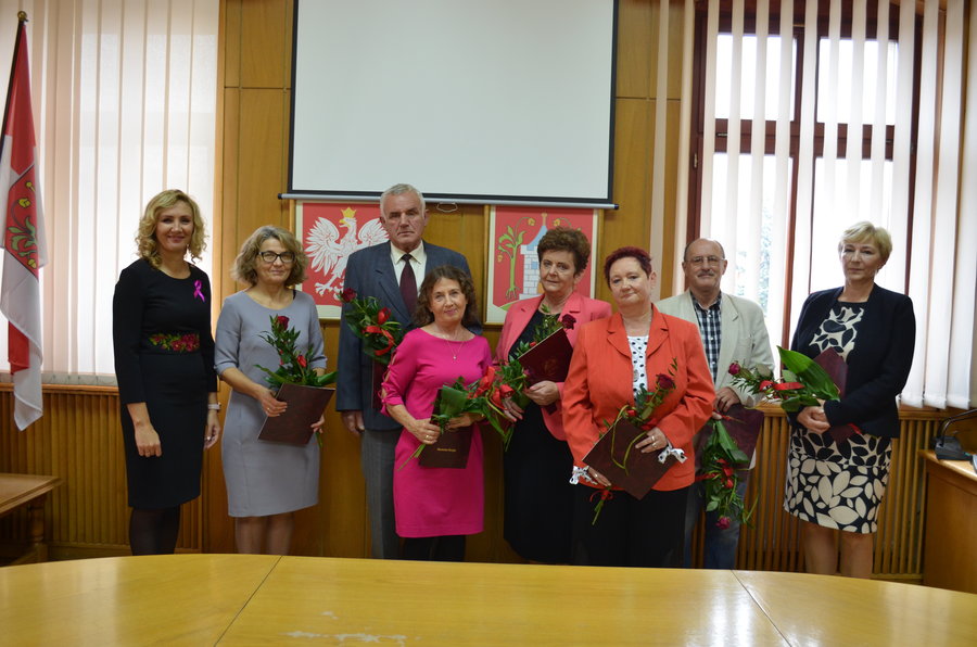 Spotkanie burmistrz Małgorzatą Adamczak było także okazją do złożenia podziękowań pracownikom, którzy w minionym roku szkolnym odeszli na emeryturę. Podziękowania otrzymali: Eugeniusz Bukowski, Krystyna Biniaś, Jadwiga Kuśnieraczak, Elżbieta Fórman, Elżbieta Michalak, Tadeusz Szweda, Violetta Michalczak, Alina Rzepecka.