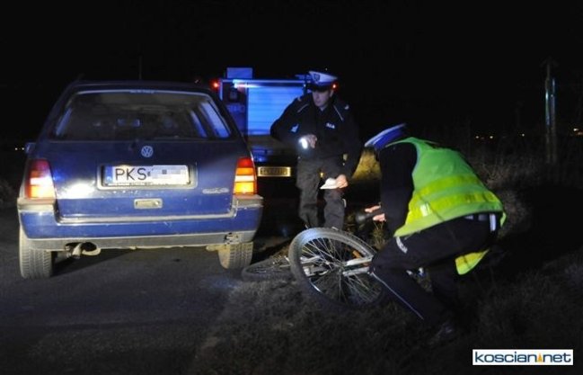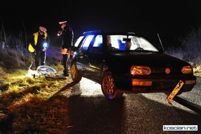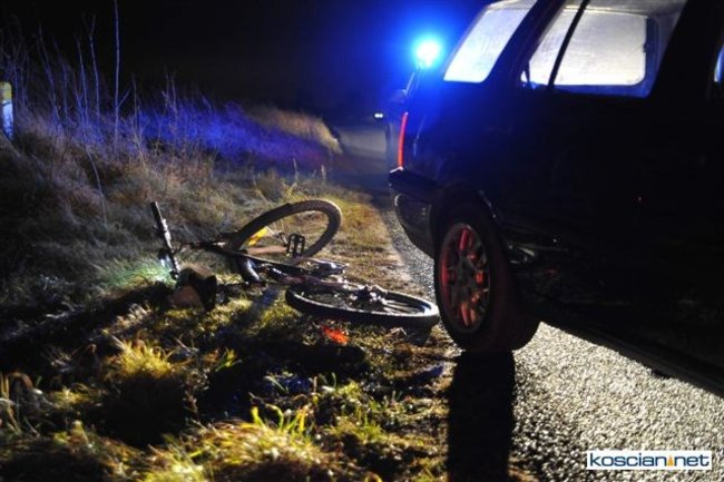 19-latka kierująca volkswagenem golfem potrąciła 14-letniego rowerzystę. Do kolizji doszło w piątek, 2 grudnia, po godzinie 17. na drodze pomiędzy Kościanem i Widziszewem.