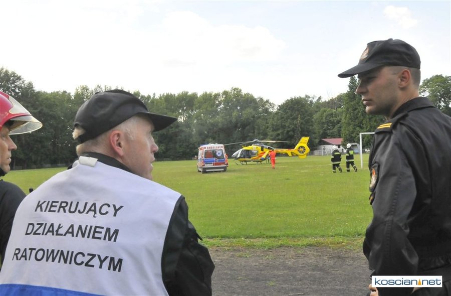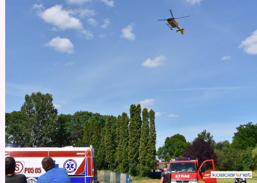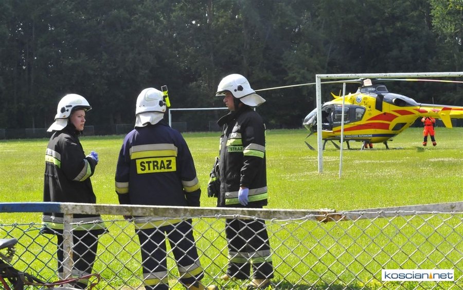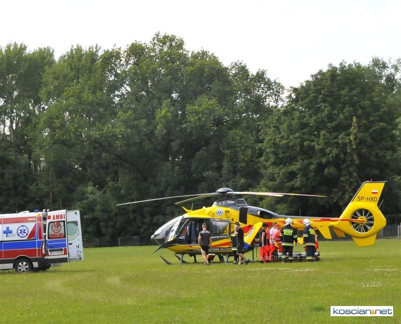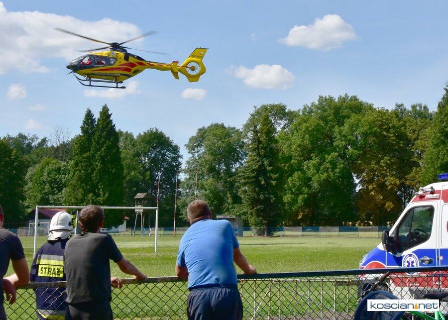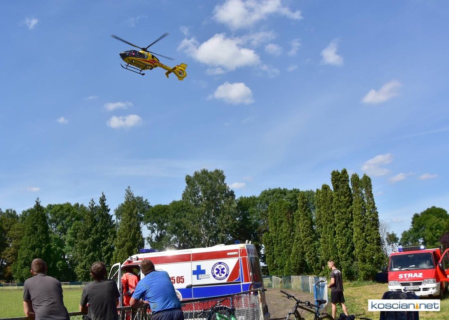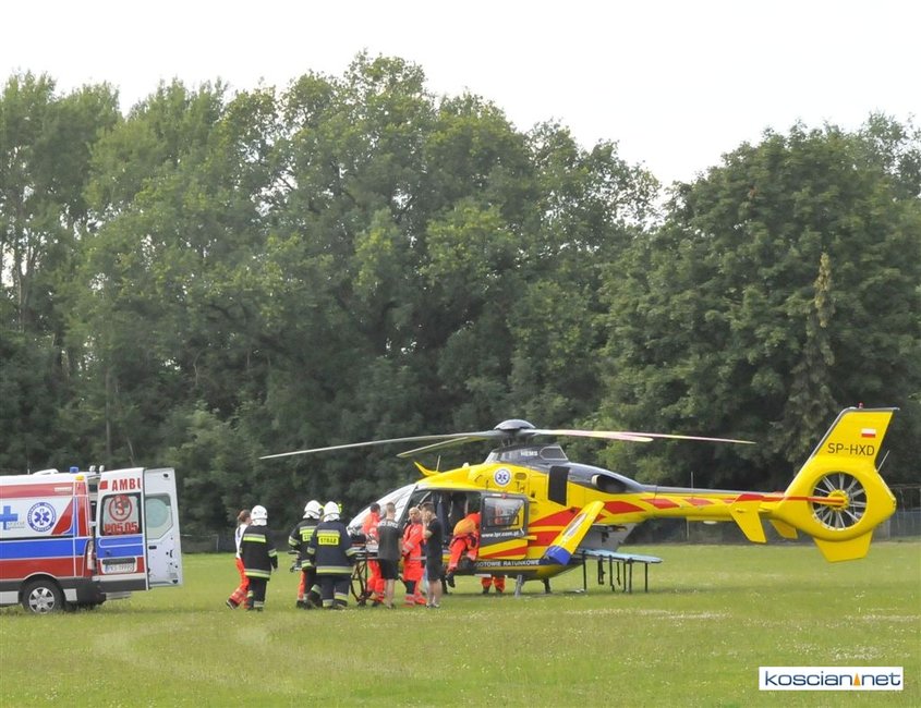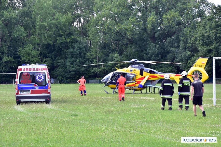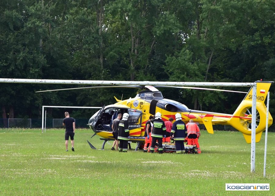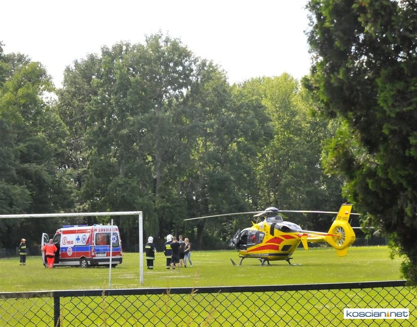 Lekarz zdecydował o wezwaniu Lotniczego Pogotowia Ratunkowego. Nastolatka przewieziono karetką na boisko skąd śmigłowiec przetransportował go do szpitala w Poznaniu.