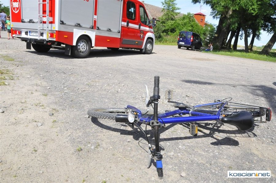 Do zdarzenia doszło w Głuchowie przed godziną piętnastą. 14-letni rowerzysta jadąc chodnikiem zderzył się z fitem doblo, który skręcił z „piątki” w polną drogę do Srocka Wielkiego. Na miejsce wysłano karetkę pogotowia z Kościana oraz strażaków z PSP Kościan, OSP Głuchowo i OSP Czempiń.