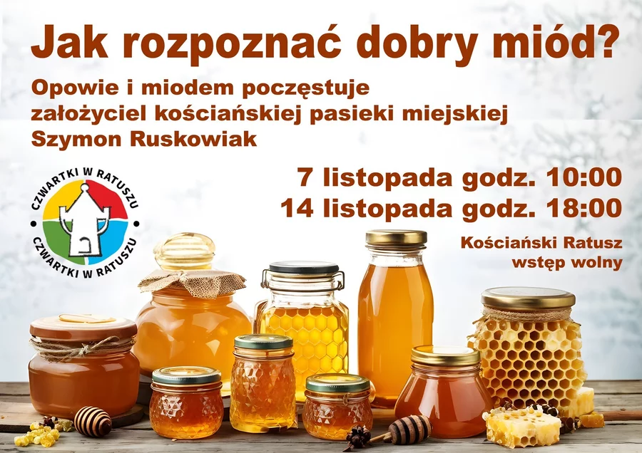 Co tydzień magistrat zaprasza na spotkania w cyklu CZWARTKI W RATUSZU. Raz przed południem, raz wczesnym wieczorem. Jutro (14 listopada) tematem spotkania będzie miód, a opowie o nim i miodem poczęstuje Szymon Ruskowiak. Początek o godzinie 18:00.