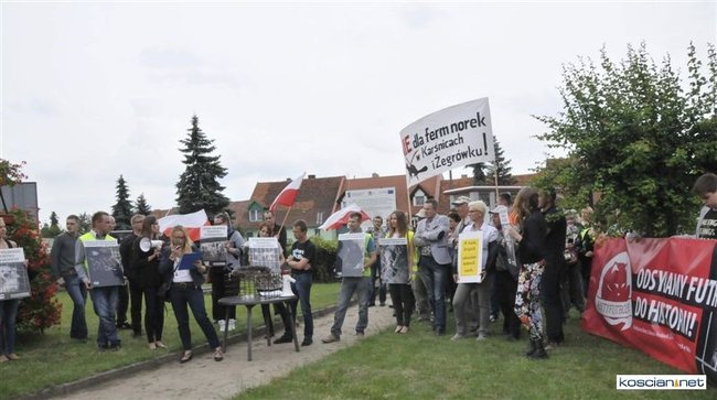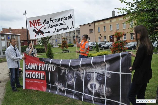 Pikietę zorganizowali przeciwnicy budowy ferm zwierząt futerkowych w Żegrówku i Karśnicach. Mieszkańców gminy Śmigiel wsparli członkowie stowarzyszenia Otwarte Klatki.