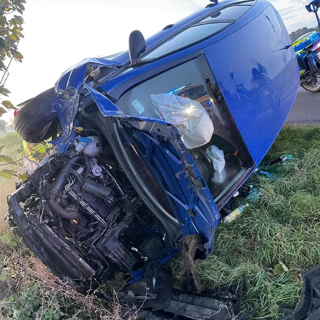 Ważne że kości całe,zelastwo można zezlomowac. Tylko jak udało się kierowcy spotkanie z tym drzewem,przecież to jest łatwa droga.
