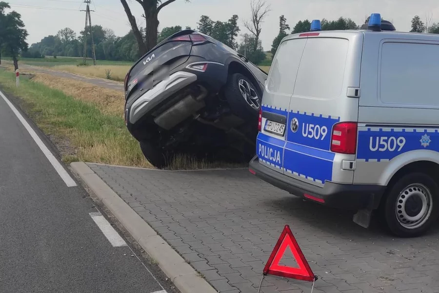 Jak wynika z ustaleń policji, 54-letni kierowca z Wrocławia, zjeżdżając z drogi nie trafił w zjazd i wjechał do rowu. Mężczyźnie nic się nie stało i samodzielnie opuścił pojazd przed przybyciem strażaków z Kościana i Racotu oraz patrolu policji.