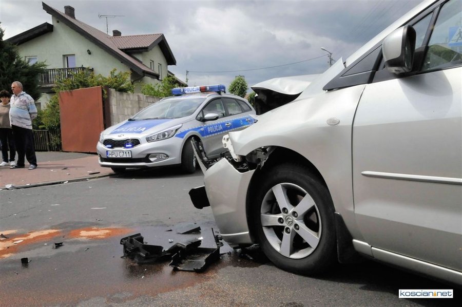 Do kolizji doszło około godziny 13.40. Kierująca citroenem berlingo, 31-letnia mieszkanka gminy Kościan, wyjeżdżając z ulicy Koszewskiego nie udzieliła pierwszeństwa prawidłowo jadącej ulicą Sierakowskiego mazdzie prowadzonej przez 30-letnią mieszkankę Kościana. Kierujące pojazdami doznały ogólnych potłuczeń. Sprawcę kolizji ukarano mandatem.