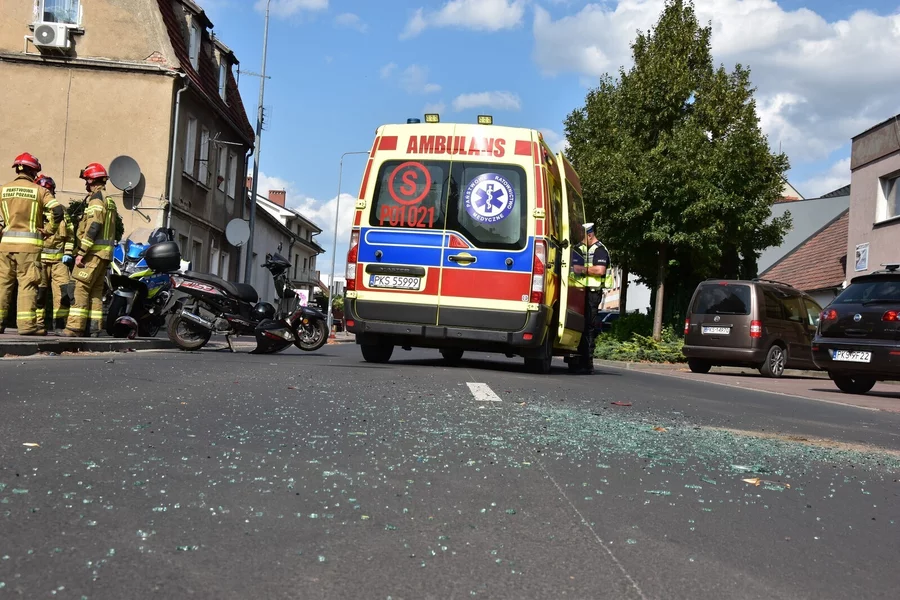 Motorowerzysta został przewieziony do szpitala na badania. Na szczęście towarzysząca mu 67-letnia pasażerka nie ucierpiała, podobnie jak kierowca samochodu osobowego.