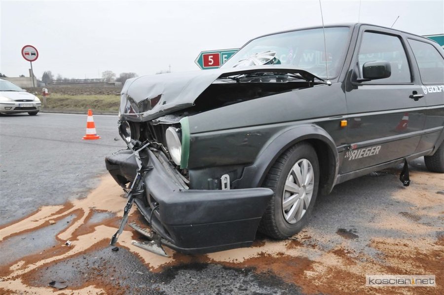 Zjeżdżający z obwodnicy Kościana volkswagen zderzył się z prawidłowo jadącym daewoo.