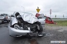 Na skrzyżowaniu starej „piątki” z drogami do Kurowa i Starych Oborzysk zderzyły się dwa samochody.