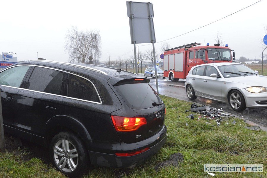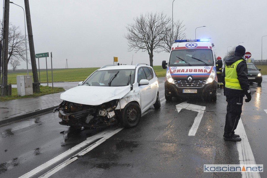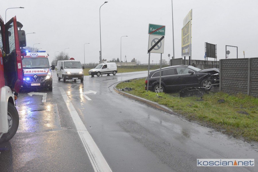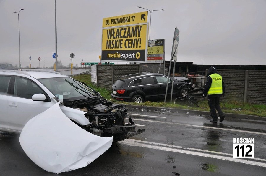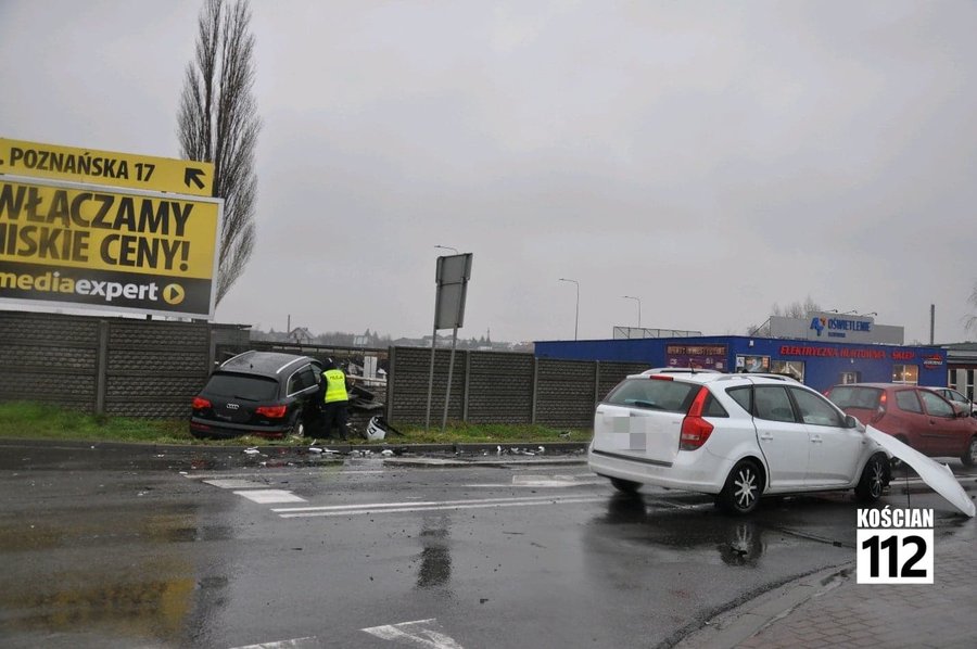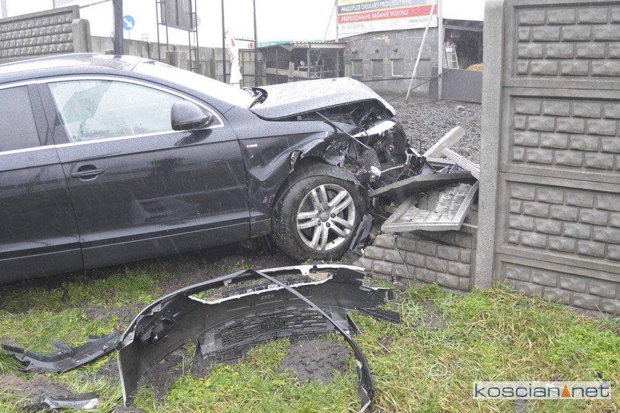 Do zdarzenia doszło w niedzielę, 23 lutego, około godziny 15.30. Jadąca od strony Czarkowa kia ced, kierowana przez 32-latkę, nie ustąpiła pierwszeństwa jadącemu od strony starej „piątki” audi Q7 prowadzonemu przez 49-letnią mieszkankę powiatu kościańskiego. Po zderzeniu audi zjechało z drogi i uderzyło w betonowe ogrodzenie. Nikt z uczestników kolizji nie odniósł obrażeń.