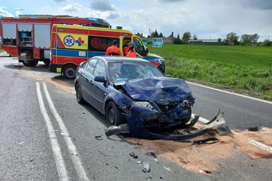 Kierująca suzuki, 24-letnia mieszkanka gminy Kościan, wjeżdżając na obwodnicę nie ustąpiła pierwszeństwa maździe kierowanej przez 35-latka z gminy Czempiń. Poszkodowani zostali oboje kierujący i 25-letnia pasażerka mazdy. Całą trójkę przewieziono do szpitala na badania.
