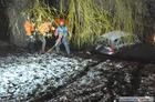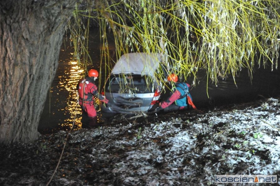 Auto wyciągnęła z wody pomoc drogowa i strażacy ze Specjalistycznej Grupy Ratownictwa Wodno-Nurkowego z PSP Kościan.