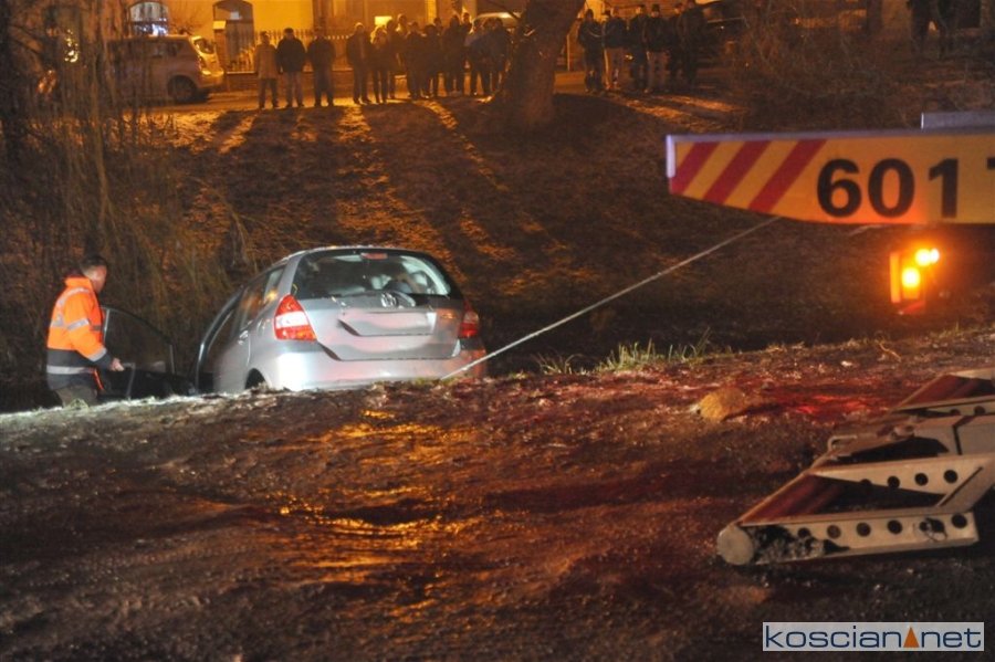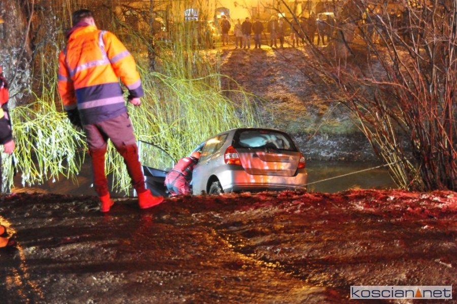 Do zdarzenia doszło w czwartek, 20 grudnia, około godz. 17.30, na ulicy Podwale w Kościanie. Kobieta kierująca hondą chcąc odśnieżyć swój samochód, opuściła pojazd, w którym włączony był silnik. Niestety nie zaciągnęła hamulca ręcznego i samochód stoczył się do kanału.