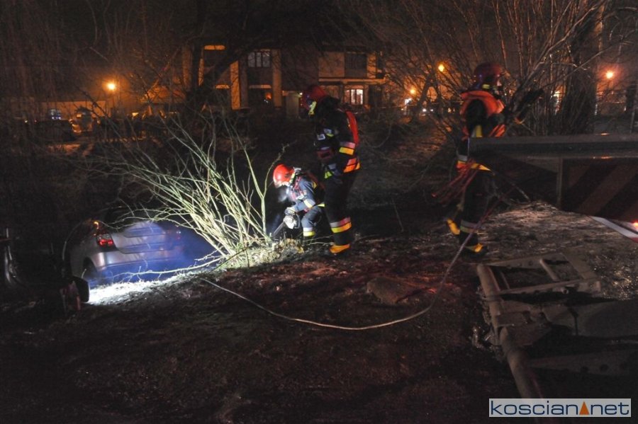 W Kościanie do kanału Obry stoczyła się honda jazz.