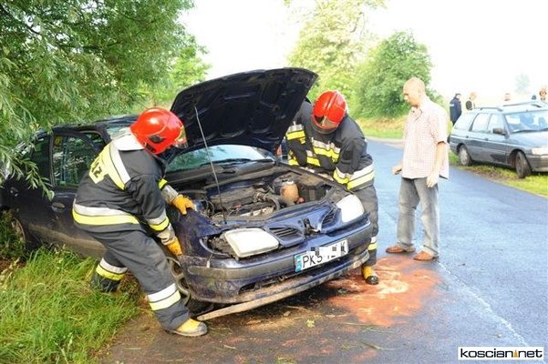 Dziś rano ( 9 VI) na drodze między Gołębiem Starym a Spytkówkami kierująca renault megane nie dostosowała prędkości pojazdu do warunków panujących na drodze i na zakręcie uderzyła w przydrożne drzewo.