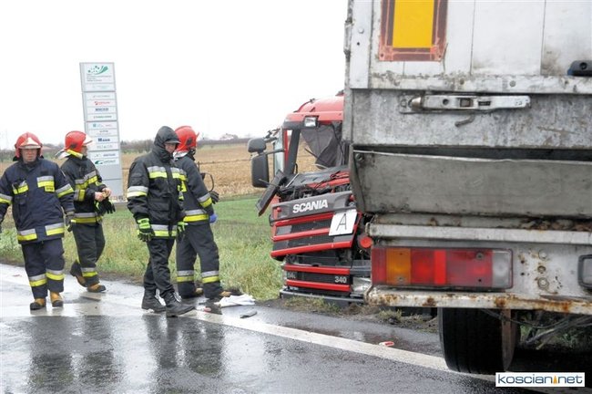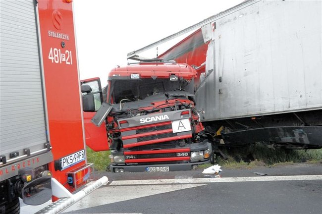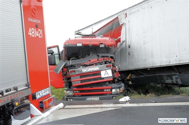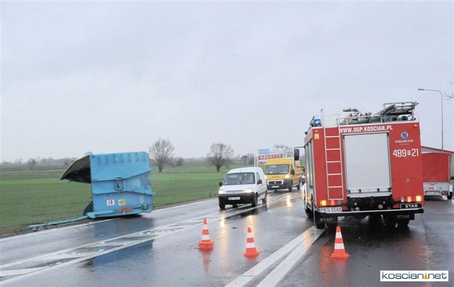 Do zdarzenia doszło tuż po godzinie 10. podczas mijania się dwóch samochodów ciężarowych. Z jednego z nich spadł metalowy kontener i uderzył w kabinę drugiej ciężarówki. Kierowca scanii nie przeżył uderzenia. Kierowca auta przewożącego kontener - mieszkaniec powiatu poznańskiego – nie doznał żadnych obrażeń. Zmarły był mieszkańcem powiatu górowskiego.