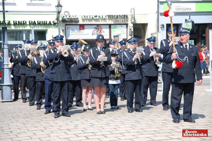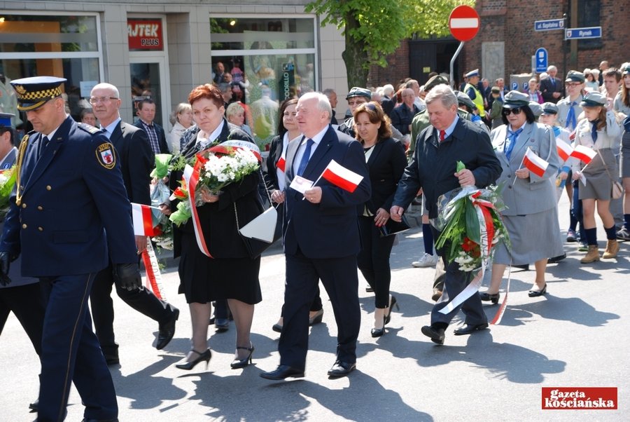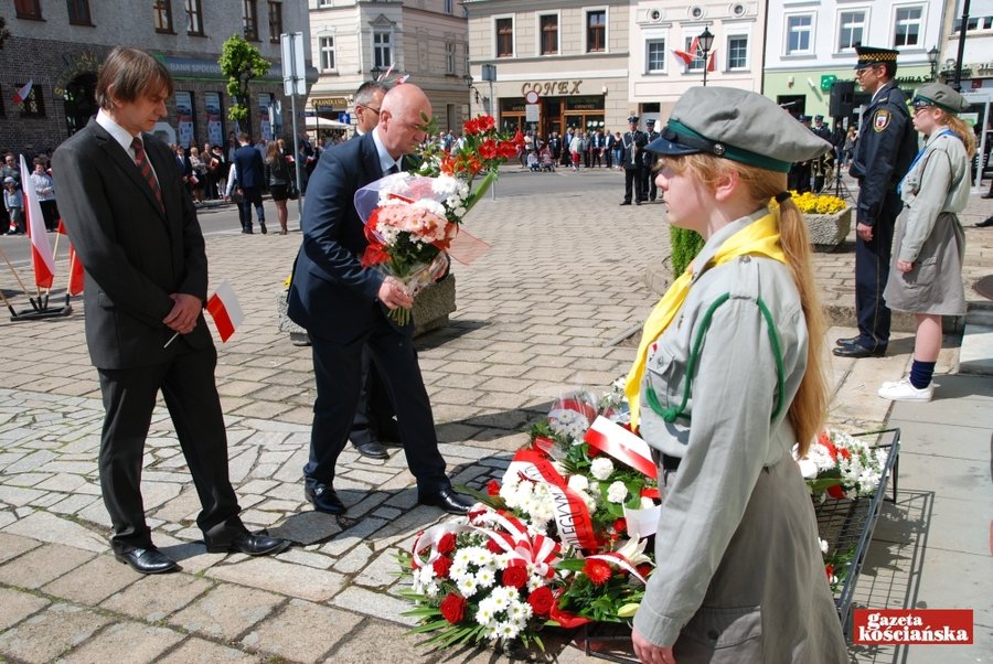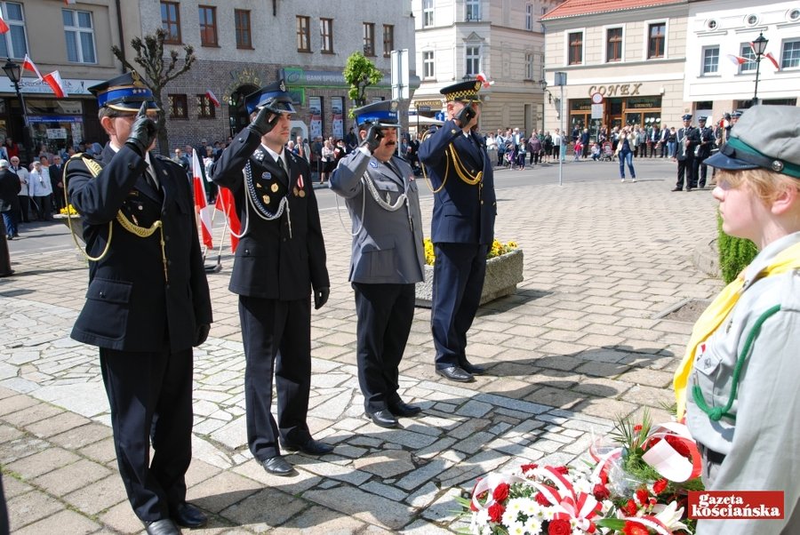 Z fary delegacje z towarzyszeniem Orkiestry Dętej OSP przemaszerowały na Rynek. We wtorkowej uroczystości uczestniczyli m.in. posłowie Adam Szłapka i Wojciech Ziemniak, władze samorządowe miasta Kościana z burmistrzem Michałem Jurgą, gminy Kościan z wójtem Andrzejem Przybyłą i powiatu kościańskiego ze starostą Bernardem Turskim, duchowieństwo z ks. dziekanem Czesławem Bartoszewskim, przedstawiciele organizacji, stowarzyszeń, szkół, instytucji, zakładów pracy, partii politycznych, związków zawodowych, poczty sztandarowe.