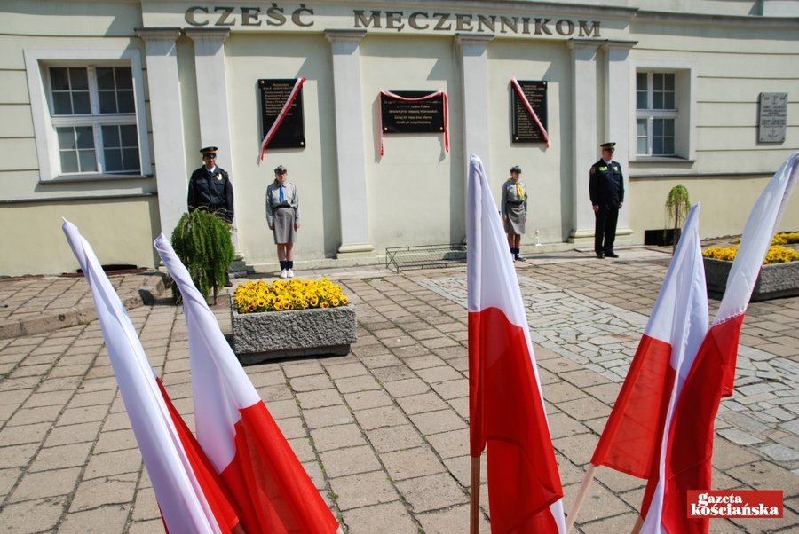 Pod tablicami upamiętniającymi pomordowanych kościaniaków złożono wiązanki kwiatów. Podczas uroczystości wiązankę melodii patriotycznych zagrała Orkiestra Dęta OSP w Kościanie. Muzeum Regionalne w Kościanie przygotowało wystawę plenerową „Kronikarze piszą – 1050-lecie Chrztu Polski”. (kar) /Gazeta Kościańska
