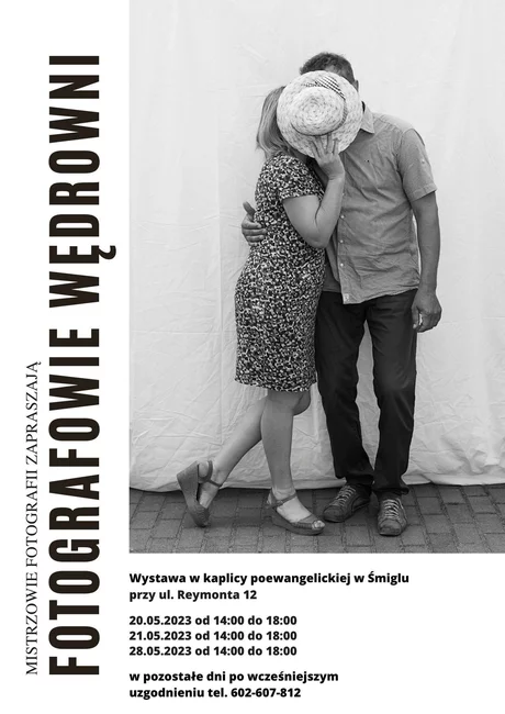 Wernisaż wystawy zdjęć „Fotografowie wędrowni” odbył się w czwartek, 18 maja, w poewangelickiej kaplicy w Śmiglu. W wydarzeniu wzięli udział członkowie grupy Masters od Photography (Mistrzowie Fotografii) Śmigiel, jej założyciel i mentor Sławek Skrobała, władze gminy, obecny i poprzedni dyrektor miejscowego Centrum Kultury oraz niektóre z osób, których portrety trafiły na wystawę.