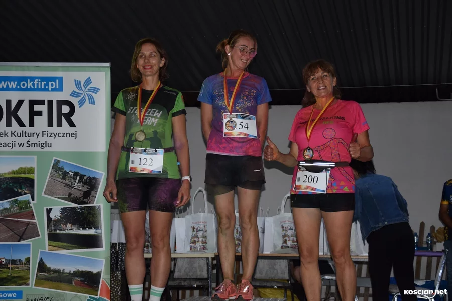 Na dystansie 5 km wśród panów triumfował Dominik Marcinkowski ze Śmigla (15:42). Kolejne miejsca na podium zajęli: Ignacy Pudliszewski z Kościana (16:23) i Rafał Tomowiak z Żakowa (16:31). Najszybszą panią była Olga Cichoszewska z Popowa Starego (20:02), która wyprzedziła Agnieszkę Bajon z Krzycka Wielkiego (21:02) i Monikę Bamber z Kokorzyna (21:58).