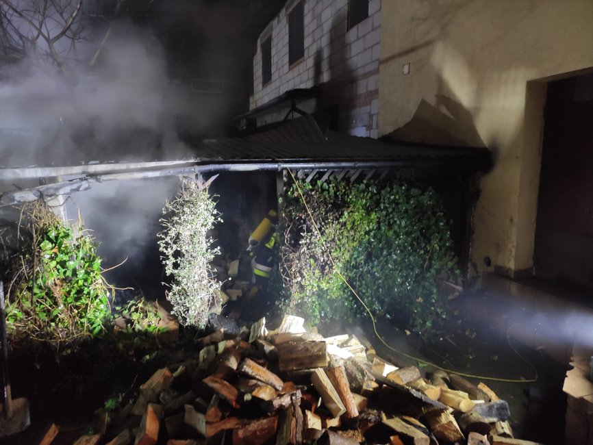 W piątek, 4 grudnia, nad ranem o godz. 3.34 dyżurny Stanowiska Kierowania Komendanta Powiatowego PSP w Kościanie otrzymał zgłoszenie o pożarze budynku gospodarczego w Kościanie. Wiadomo było, że pali się drewniana szopa, w której składowane jest drewno i węgiel. Do akcji natychmiast udały się trzy zastępy z JRG Kościan oraz jeden zastęp z OSP Kościan.