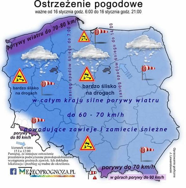 Pługi i piaskarki dotarły w nieliczne miejsca. Większość ulic i dróg jest bardzo śliska. Według prognoz sytuację pogorszą nadchodzące opady deszczu. Wskazana jest szczególna ostrożność.