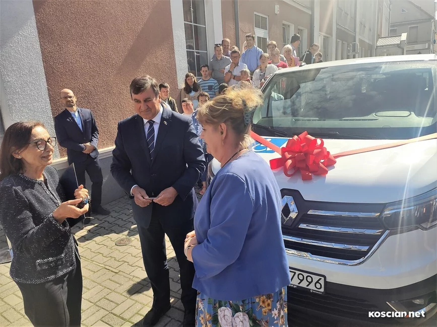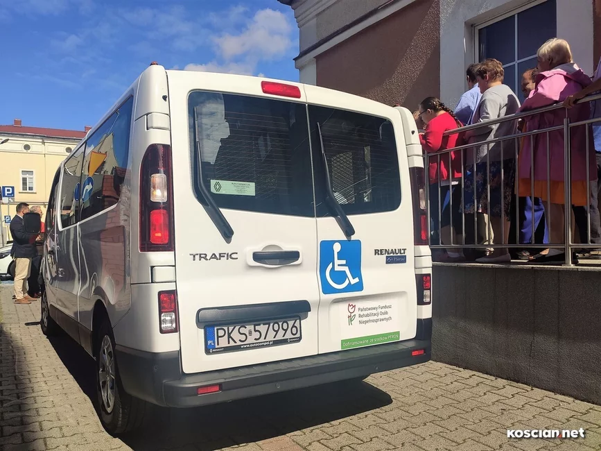 Nowy renault trafic zastąpił wysłużonego forda z 2014 roku. Zakup wartego 193 tysiące złotych samochodu sfinansowały samorządy: miasta Kościana (46,3 tys. zł), gminy Kościan (25,8 tys. zł), Czempinia (12 tys. zł) i Śmigla (9,4 tys. zł) oraz Oddział Wielkopolski Państwowego Funduszu Rehabilitacji Osób Niepełnosprawnych (99, 4 tys. zł).