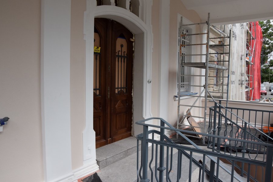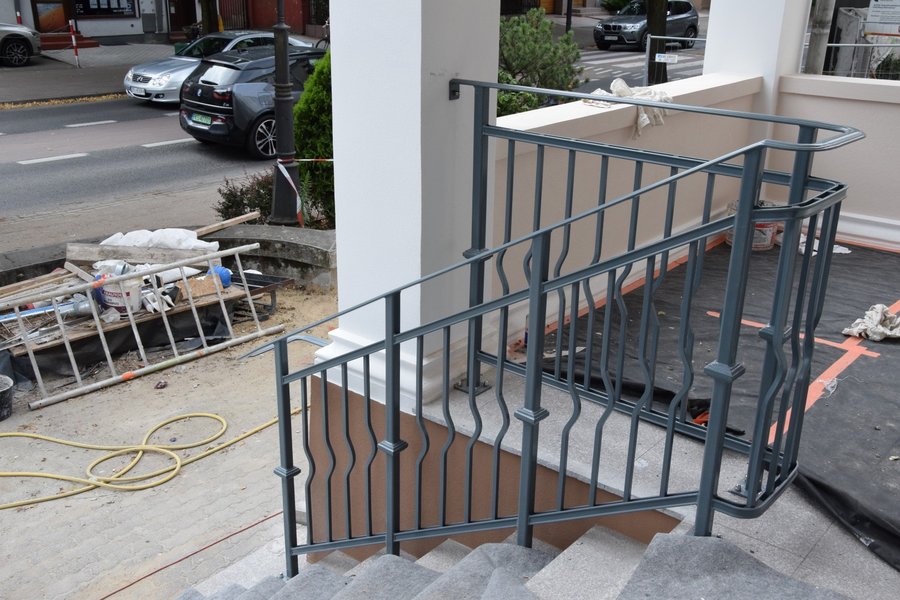 - Nowe drzwi są dębowe. Zachowano w nich oryginalne, przedwojenne kratowania, które wypiaskowano, oczyszczono i pomalowano. Znajdujące się po bokach drzwi okna były okratowane. Ciekawostką jest to, że jak ustalono, były to oryginalne, kute kraty, które mogły być tak stare, jak budynek. Kraty po wypiaskowaniu, oczyszczeniu i pomalowaniu wróciły na swoje miejsce. Wymieniono balustrady. Nowe mają elementy dekoracyjne nawiązujące do krat w oknach – informuje Bartosz Jankowski z Biura Promocji i Informacji Starostwa Powiatowego w Kościanie.