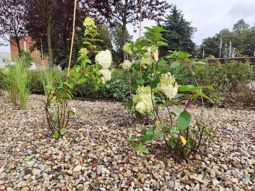 Kolejne nasadzenia wykonano w ramach dziesiątego etapu zadania „Budowa kościańskiego traktu rekreacyjnego”. Wokół fontanny posadzono ozdobne trawy, hortensje bukietowe i lawendę. Całość wyłożono kamieniem i zabezpieczono obrzeżami. Dodatkowo zainstalowano system automatycznego nawadniania terenu.