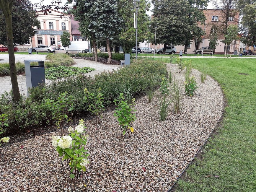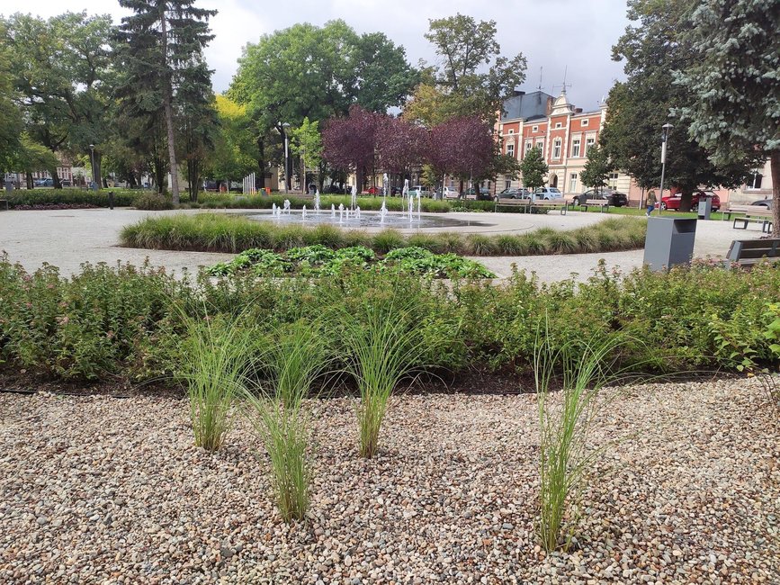 Wokół fontanny na Placu Wolności w Kościanie posadzono kolejne rośliny ozdobne i zamontowano system automatycznego nawadniania.