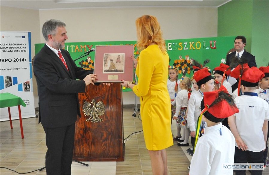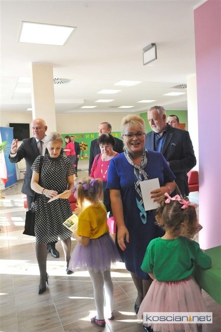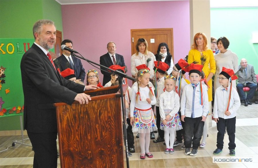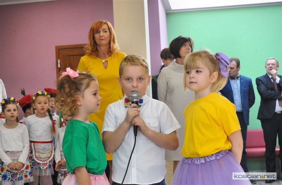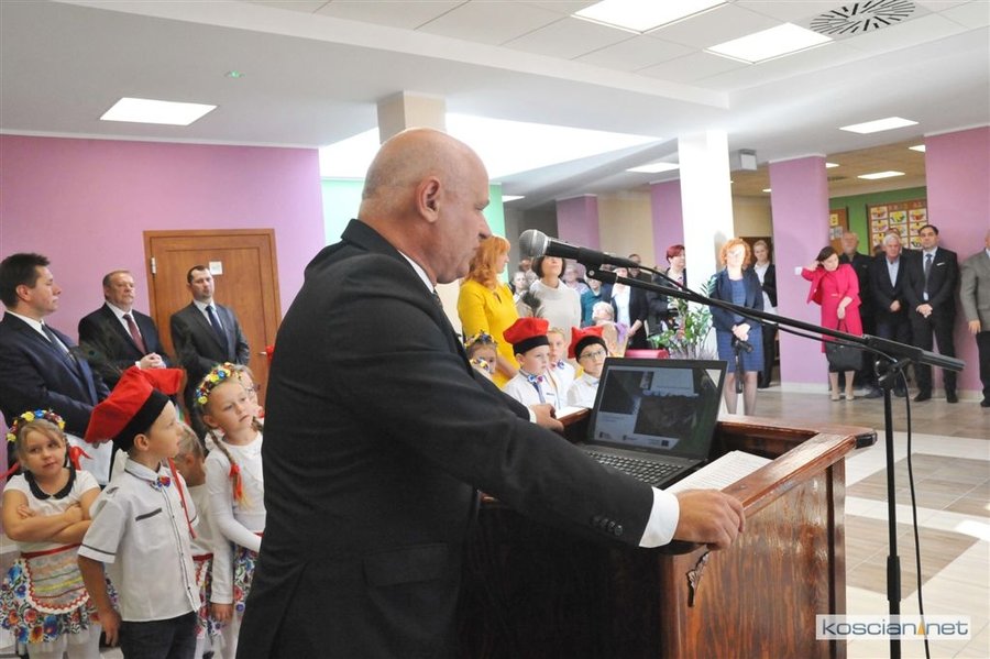 Symboliczną wstęgę przecięli wspólnie: marszałek Marek Woźniak, wójt Andrzej Przybyła, Jan Szczepaniak – przewodniczący Rady Gminy Kościan, Żaneta Igłowicz-Nieć – dyrektor szkoły, Władysław Suchora z Budomontu i projektantka obiektu Izabela Wrześniewska. Asystowały im przedszkolaki.